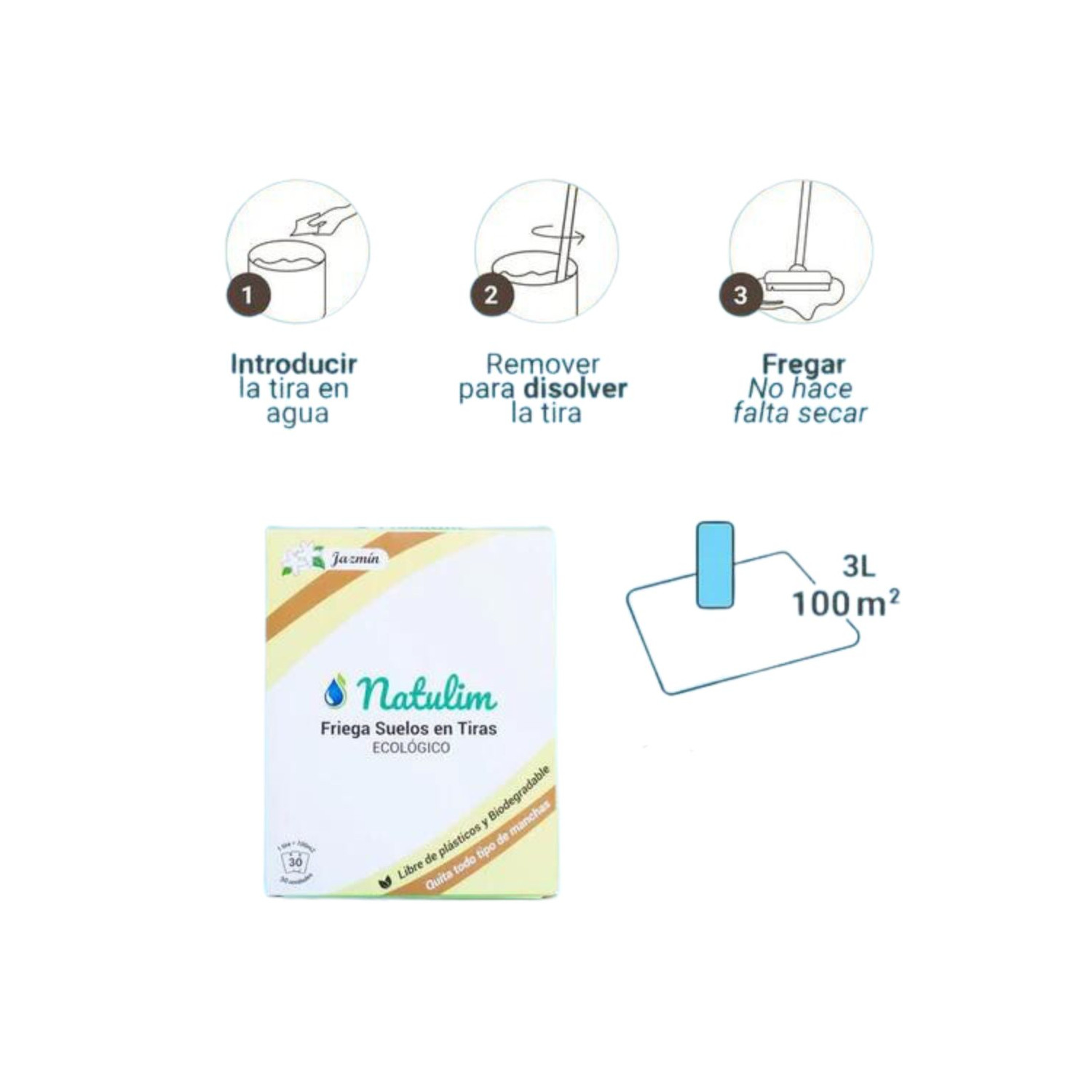 ¡Descubre el Friegasuelos Ecológico en Tiras! Este innovador producto ofrece una limpieza efectiva y sostenible para hasta 100 metros cuadrados. Simplemente añade una tira en el cubo de la fregona con agua y disfruta de un hogar limpio sin residuos. Olvídate de los friegasuelos convencionales en envases plásticos que dañan el planeta. Eficaz en todo tipo de suelos, libre de colorantes y dioxano, vegano y cruelty-free. Su fácil uso y ligero aroma a jazmín transforman la forma en que limpias. Reduce tu huella de carbono hasta en un 94% gracias a su formato compacto.